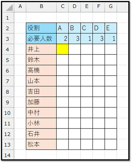 以下の画像のように、一部のセルが結合された表を、たった1つの数式(黄色のセル)で、セルの結合を解除して抽出する方法について紹介していきます。