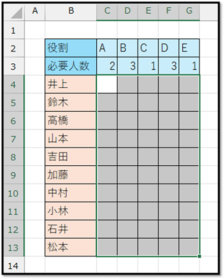 // B3:B11:処理対象の範囲に、「大カテゴリーの範囲」を指定