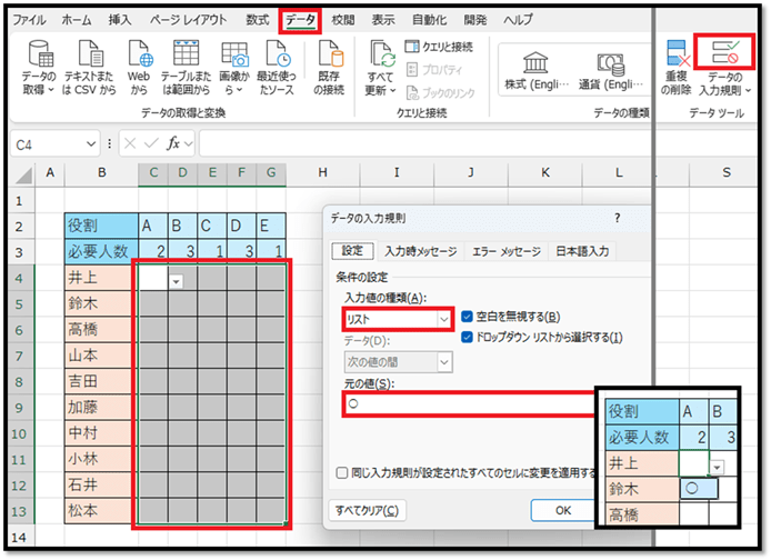 セル結合を解除して抽出する数式