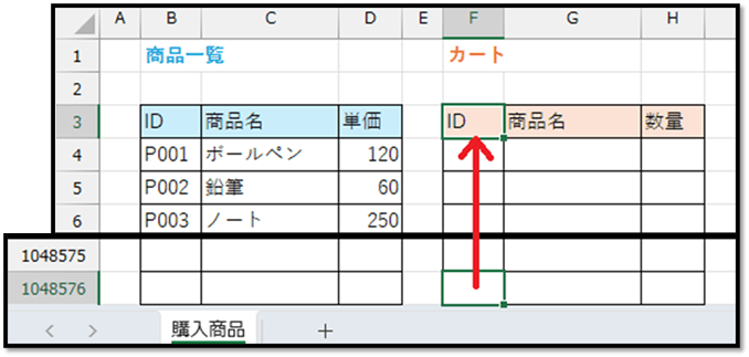 今回は、用意したチェックボックスをチェックすると同時に、フィルター機能による絞り込み(「済」がFALSEの行のみを表示)を実行します。