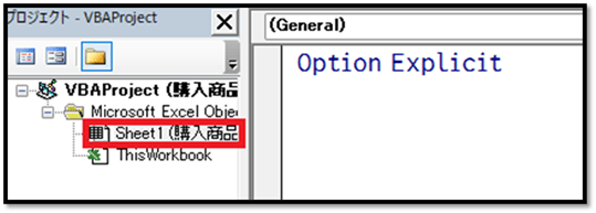 「Option Explicit」は、VBEの設定次第では表示されません。「Option Explicit」についての解説はこちらでは省略します。