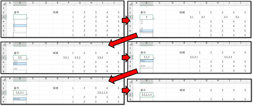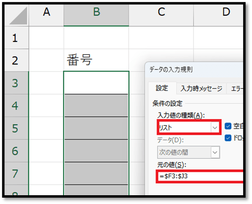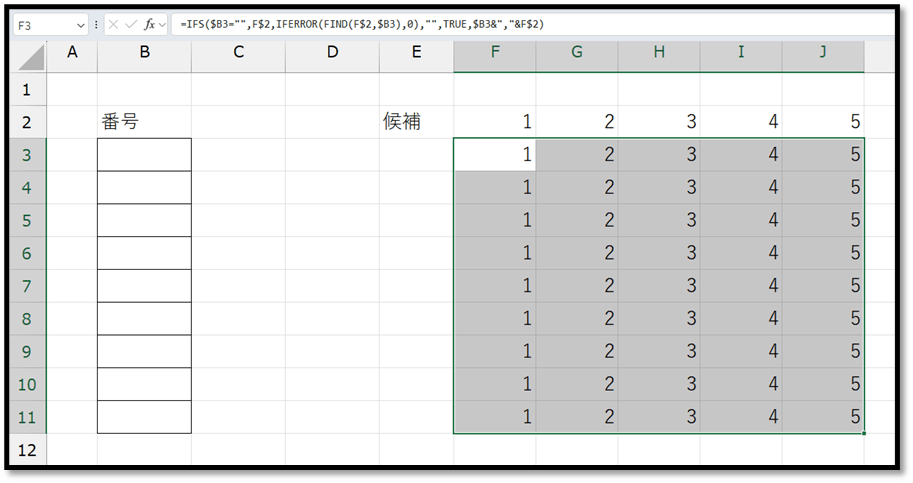 // 他の選択範囲には相対参照で反映(B列のみ「$」で固定)