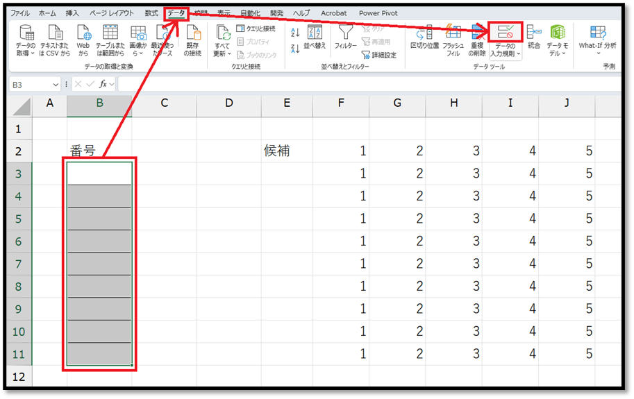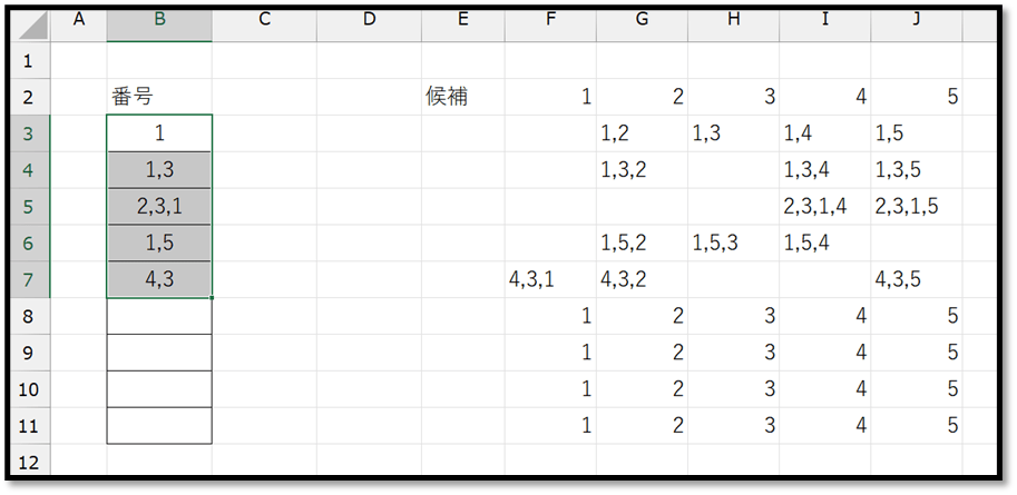 以下の表の場合は、B列とC列の7行目以降が対象範囲となります。