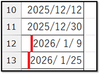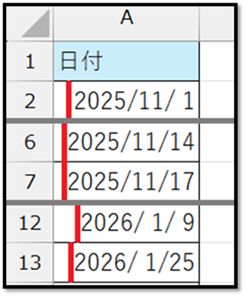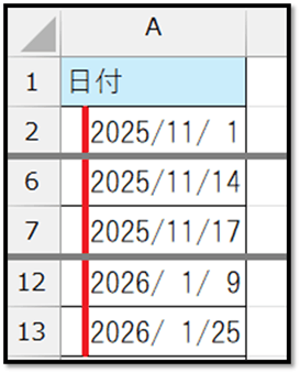 そして、セルの位置情報を格納している変数(i)に、結合されていた範囲のセルの数から1を引いた数を加えて、その範囲の末尾のセルの位置情報に上書きしています。