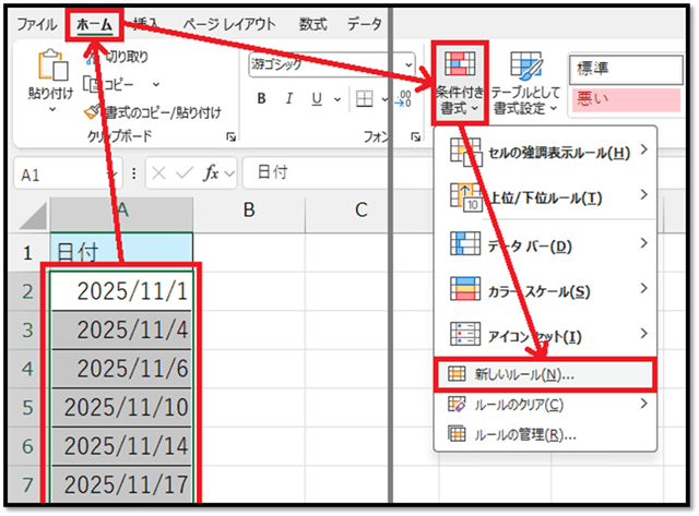 | ・セル以外(Rangeではない:図形など) ・(セルの場合で)セルが1列以外(複数列) ・(セルが1列の場合で)セルの数が10000より多い |