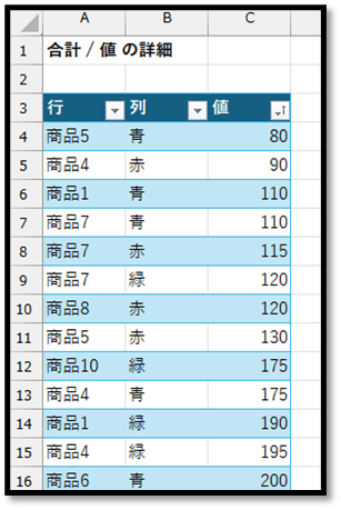 先ほどの内容とは異なり、こちらでは「Order1:=xlDescending」として降順にしています。