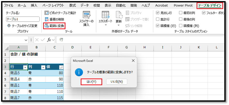 こちらで「rng」というRange型の変数を用意し、その変数に対象の表の範囲を割り当てています。