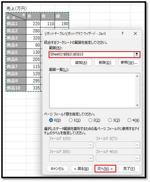 「Range(“B2”).CurrentRegion」で、セルB2周囲に連続しているデータ範囲全体を指定しています。