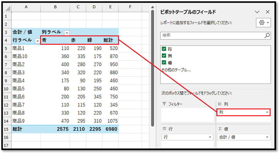 該当する項目名の上で右クリックすることで、以下のように並べ替えを行うことができます。