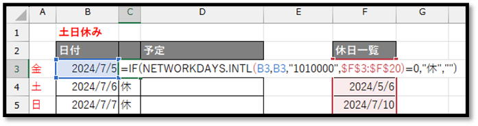 // $B$3:$B$5:抽出対象の範囲(他のセルにコピーした際にも位置が移動しないように「$」で固定)