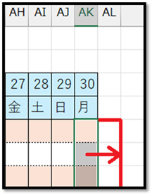 ①条件付き書式の設定で31日の範囲の色付けができていない