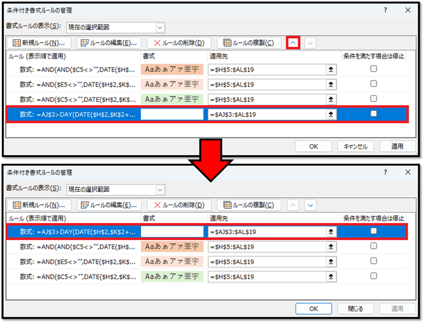 → 29日以降を非表示にする条件付き書式の優先順位を一番高くする