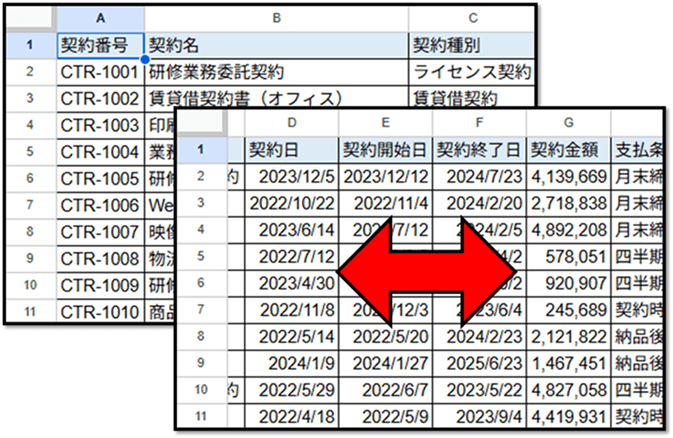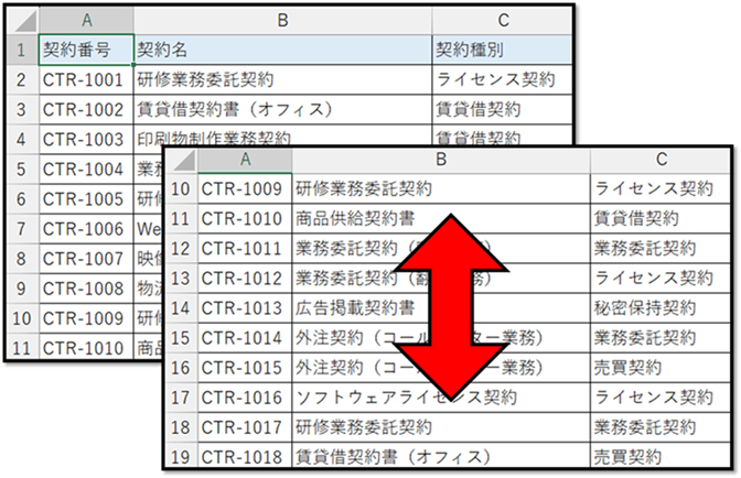 離れている範囲を指定する場合は、以下のようにカンマ区切りで指定します。