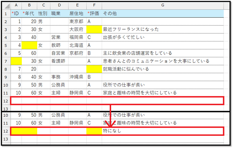 // "A":上記で指定した項目で集計する対象