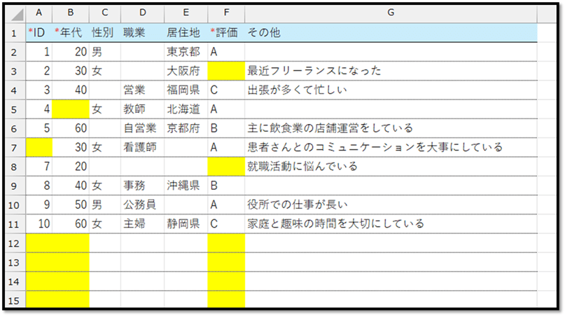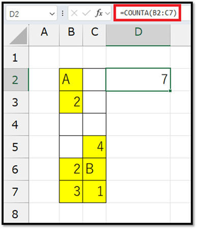 3. COUNTA:何かしらの値が入力されているセルの数を求める