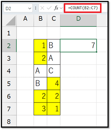 2. COUNT:数値が入力されているセルの数を求める