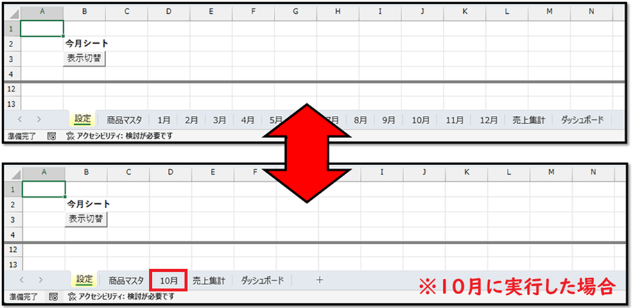 「ws」という変数(入れ物)を用意し、「PDF出力」シートの情報を「ws」に割り当てています。
