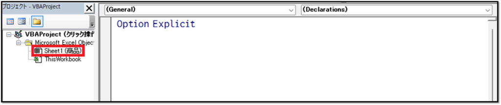 「Option Explicit」は、VBEの設定内容次第では表示されません。「Option Explicit」についての解説はこちらでは省略します。