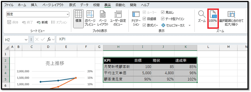見せたい範囲を瞬時に拡大するときに便利な機能、それは「選択範囲に合わせて拡大/縮小」です。