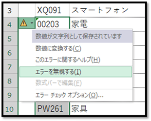 【Excel】「文字列の数字」の警告を非表示にする方法