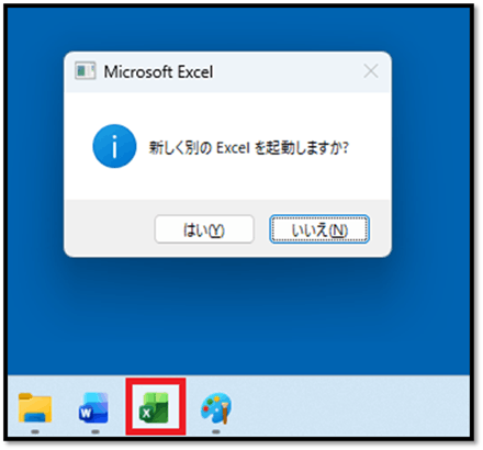 「はい」を選択すると、現在開いているExcelとは別のアプリとして新しいExcelが起動します。