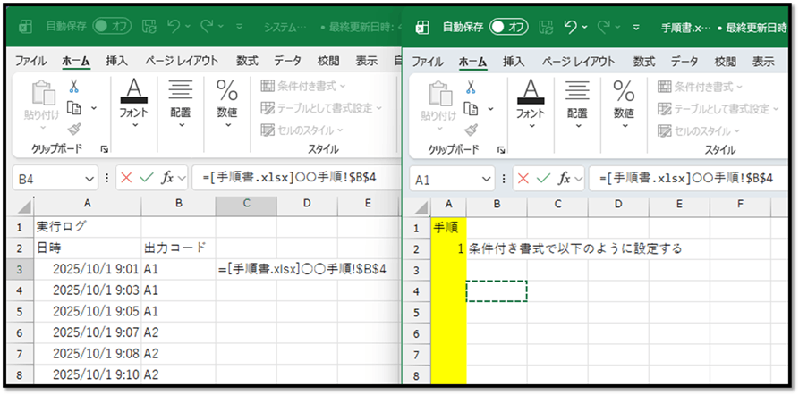 Excelで作業手順書などを作っていると、次のような場面があります。