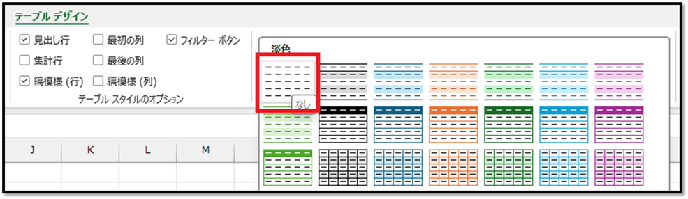 こちらでは、元の書式を生かすため、[テーブルスタイル]を[なし]にします。