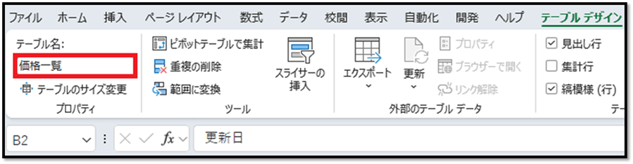 テーブル名は[テーブルデザイン]タブから変更できます。