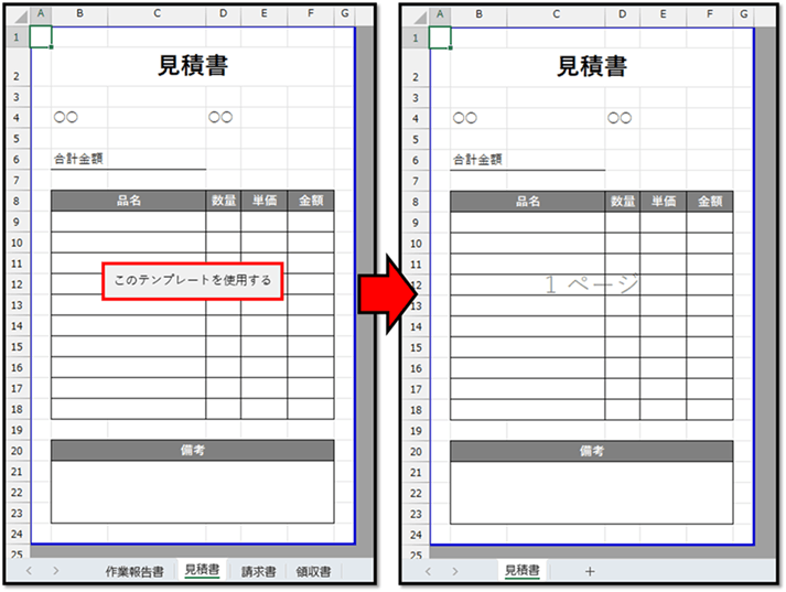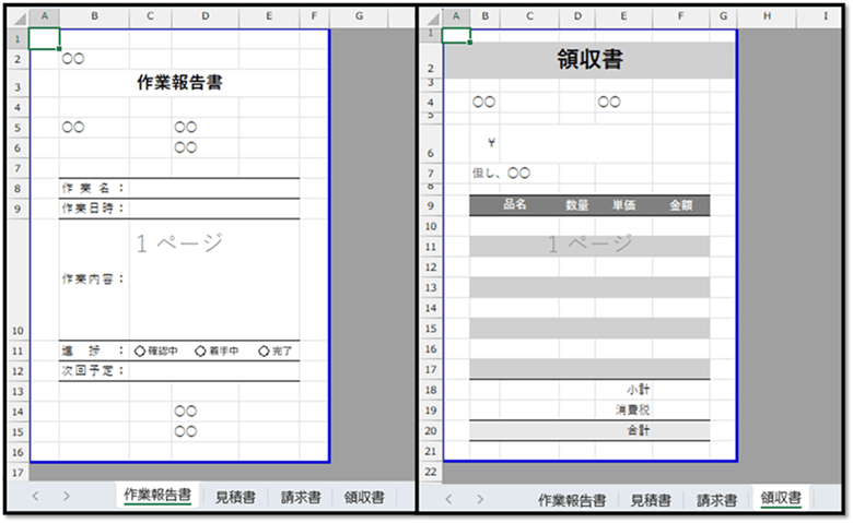 こちらのファイルは、複数の書類テンプレートをシートごとで管理したものです。